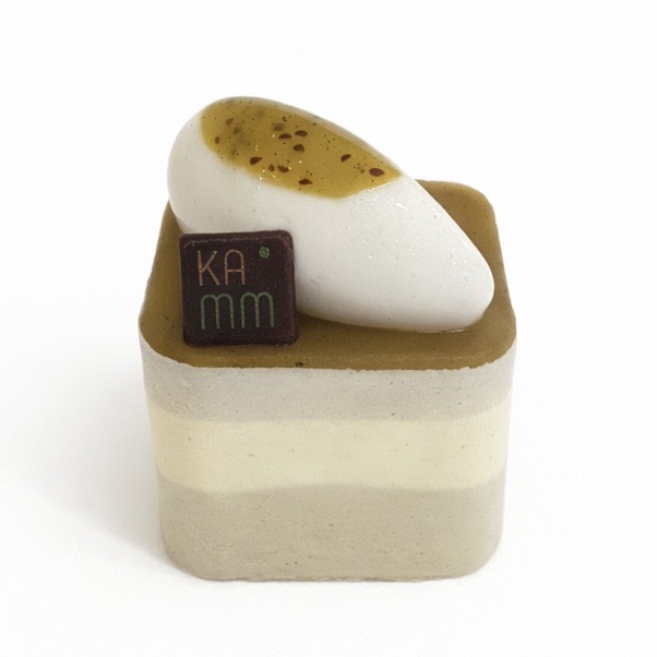 Crème légère à la vanille de Madagascar, gelée de kiwi, compotée de banane poêlée, biscuit moelleux amandes et vanille.